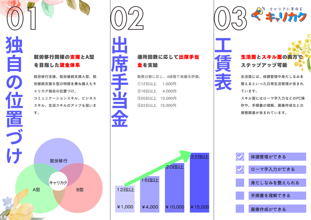 ③ ステップアップ可能な工賃表もご紹介