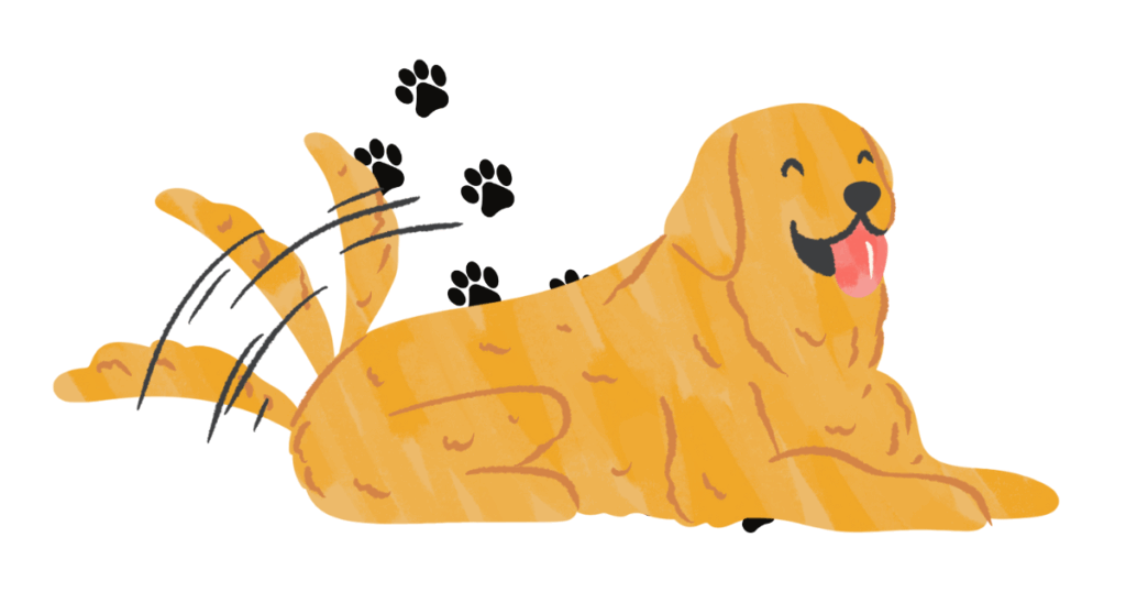 椅子に座っていたら、前を塞がれ、尻尾を振ってどけません。