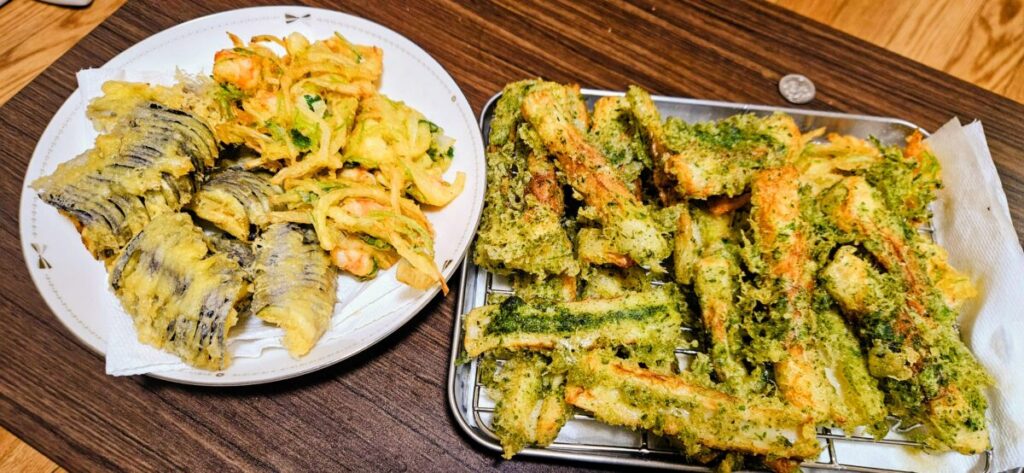 前職で料理していたときにも天ぷら揚げることが多かったので気合を入れて揚げていたところ