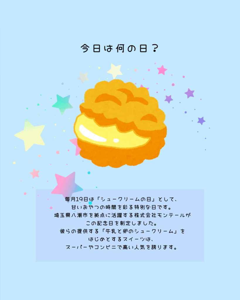 本日8月19日は、毎月19日が「シュークリームの日」として知られる記念日です。