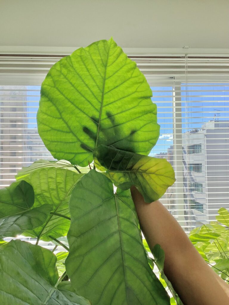 そして私は気づいたのです。窓のほうを向いている葉は更に大きなことに!