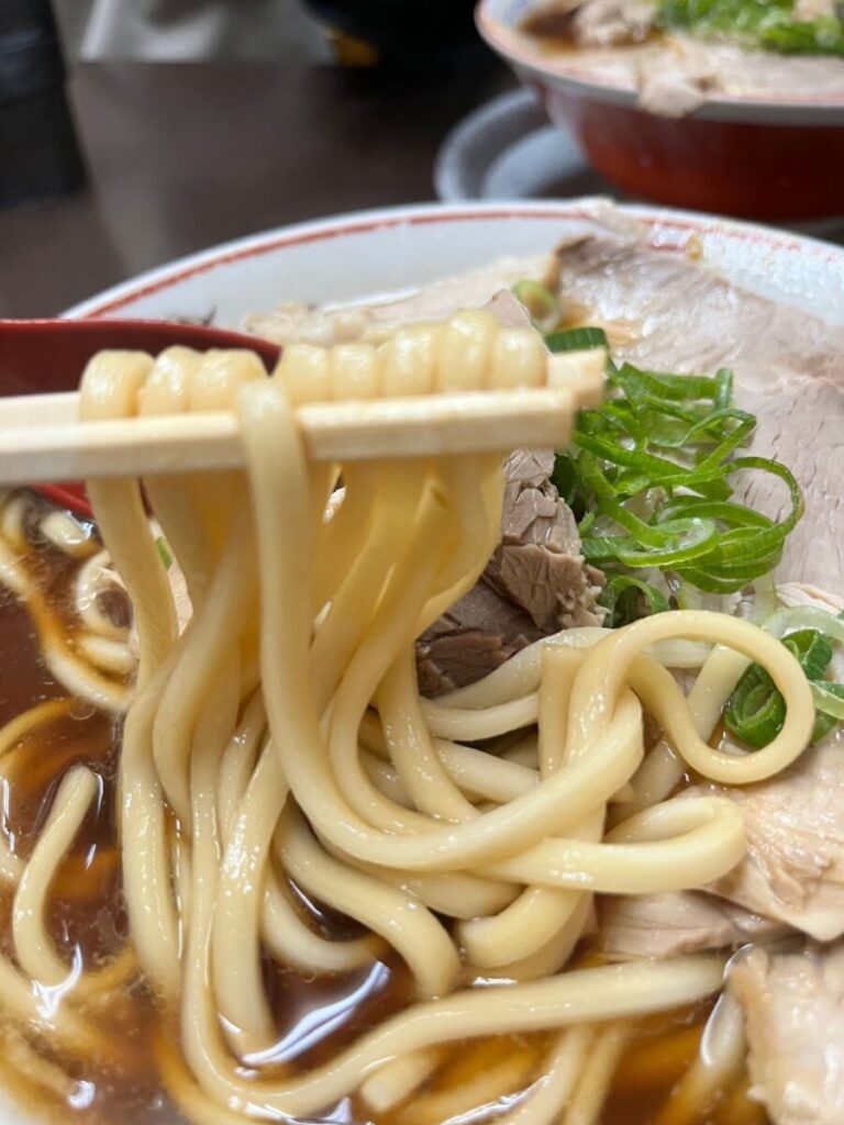 太め&モチモチ。関西は細麺が多いので、久々の太麺でした。