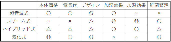 × 電気代が超音波式よりお高い、スチーム式ほど暖かくない