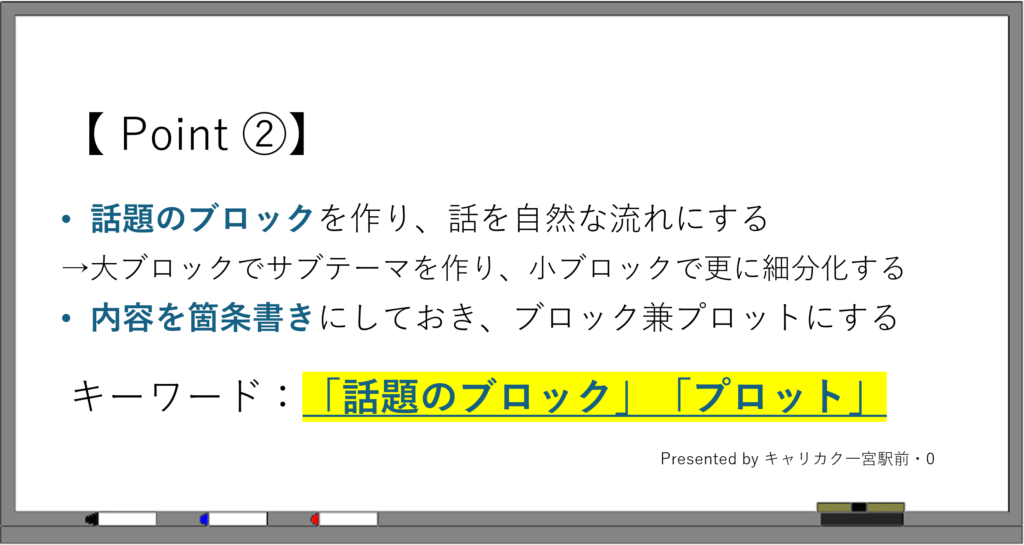 話をブロック分けする時に重要なのは、自然な流れに整えることです。
