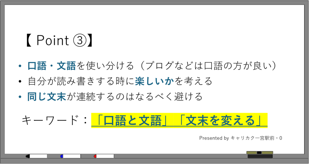 これは、先述した「語りかけているつもりで書く」にも通じるところがありますね。