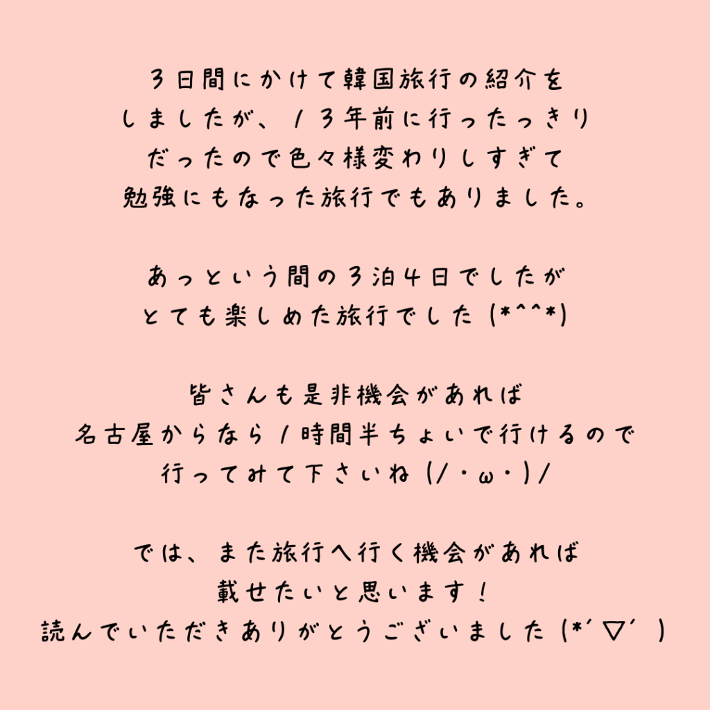3日間に分けてお伝えしましたが韓国の良さが伝わったでしょうか??
