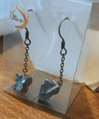 様々なものを見て回っているうちに、ビスマス結晶のピアスを発見。