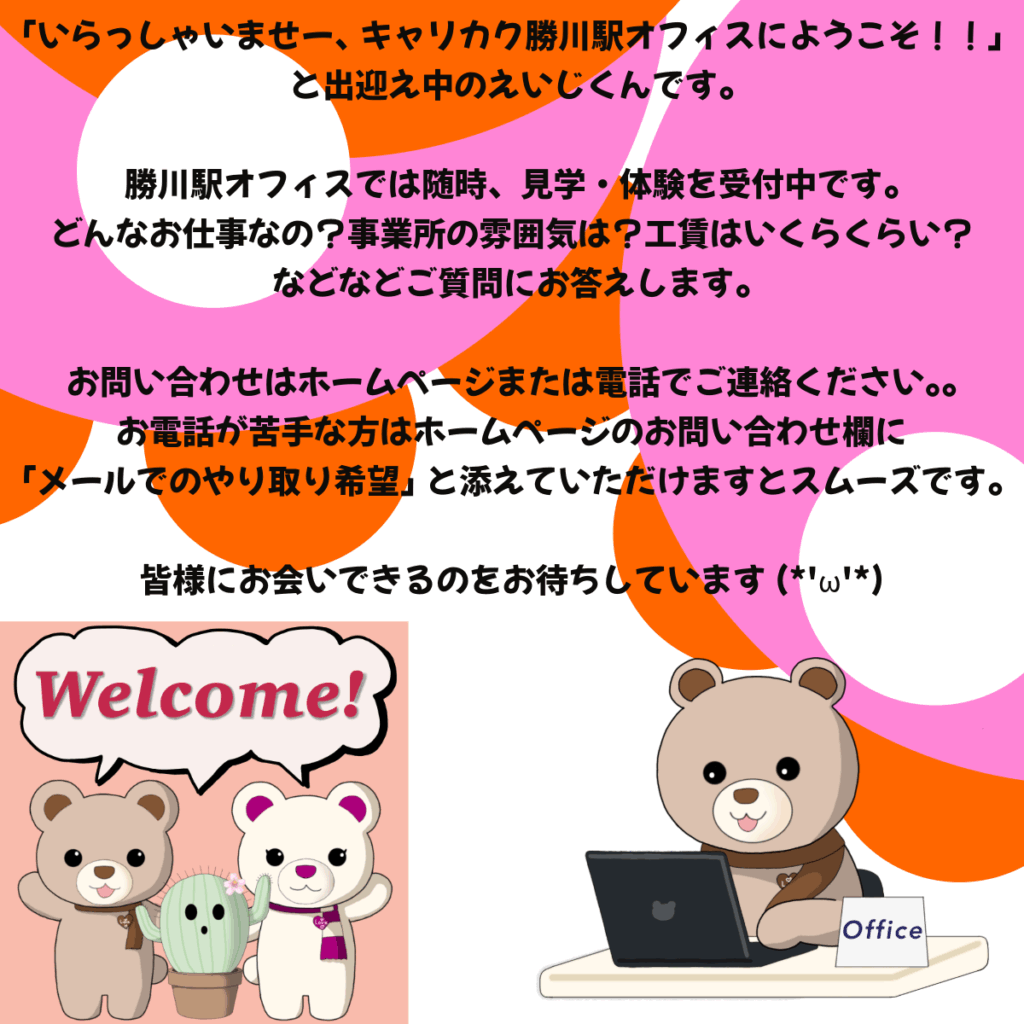 キャリカク勝川駅オフィスでは見学や体験などしてくれる方を募集しています(*’ω’*)🎵
