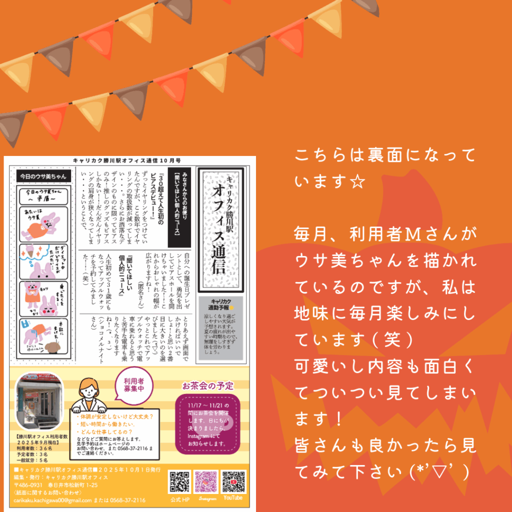 今月のキャリカク勝川駅オフィス通信出来上がりました(/・ω・)/🎵