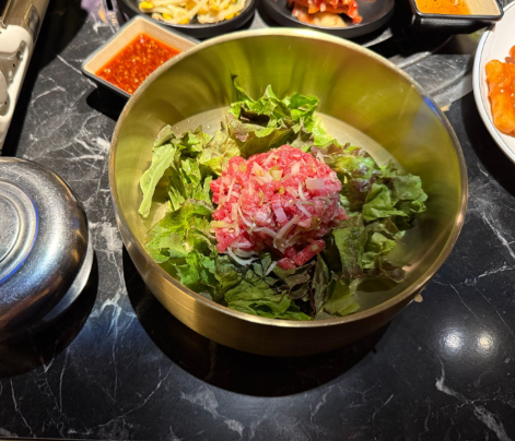 そして夜はサムギョプサルとユッケビビンバを食べました!