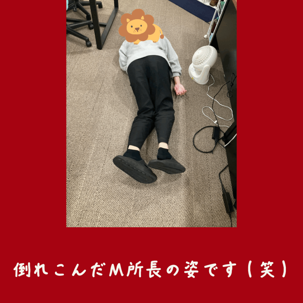 M所長はじゃんけんに破れ、倒れこみました(笑)