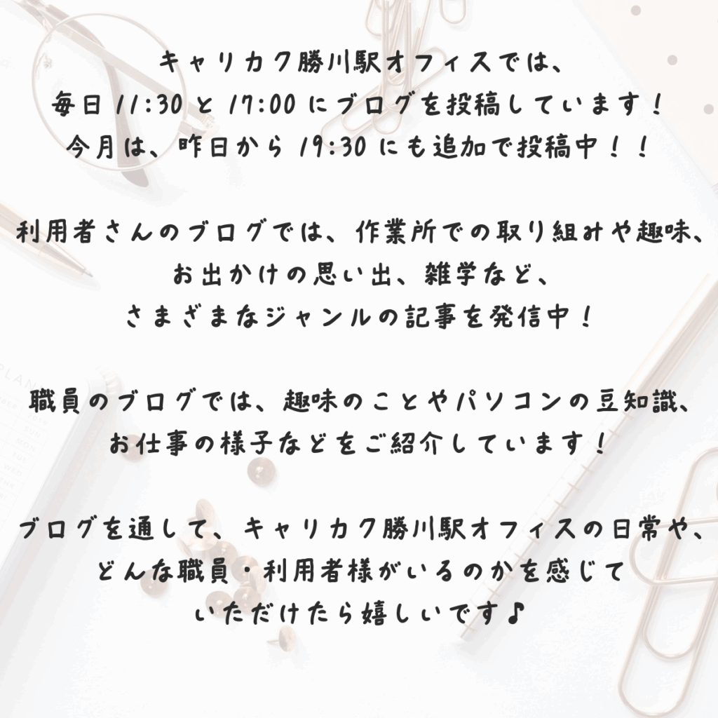 ブログを通してキャリカク勝川駅オフィスがどんなところだったり、どんな利用者さんがいるか分かってもらえたら嬉しいですね🎵