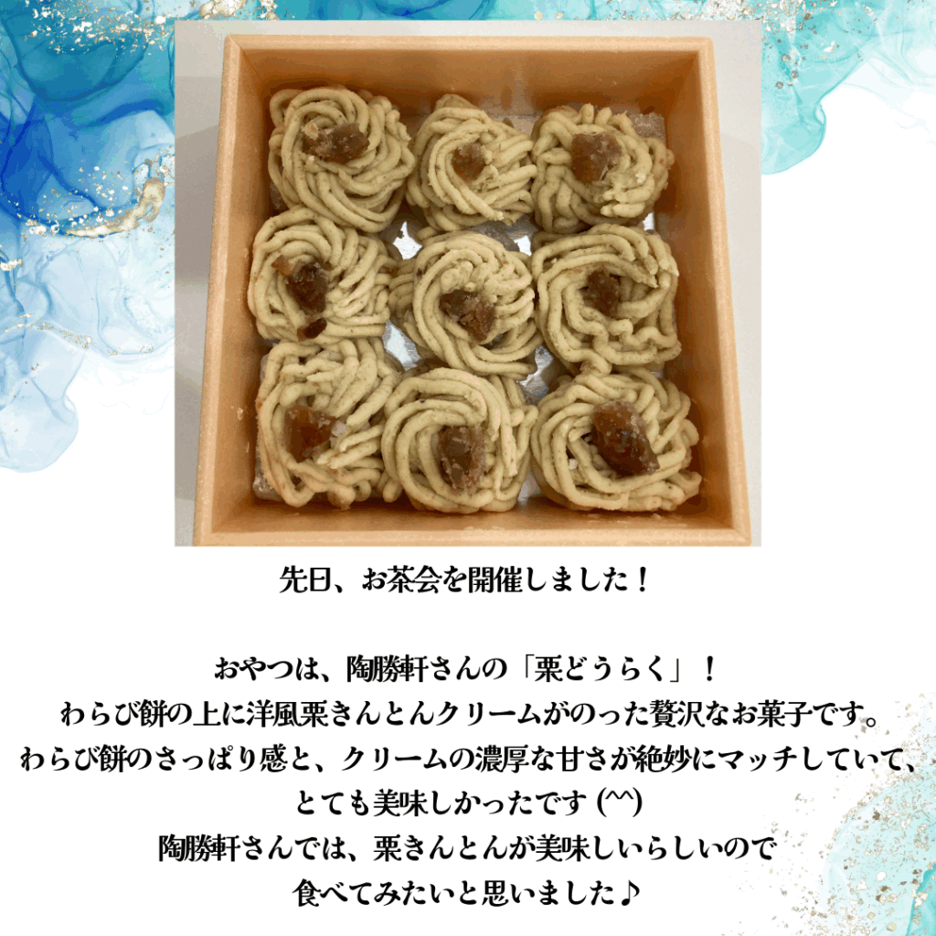 今月のお茶菓子は【陶勝軒】さんの「栗どうらく」というお菓子を食べました!!