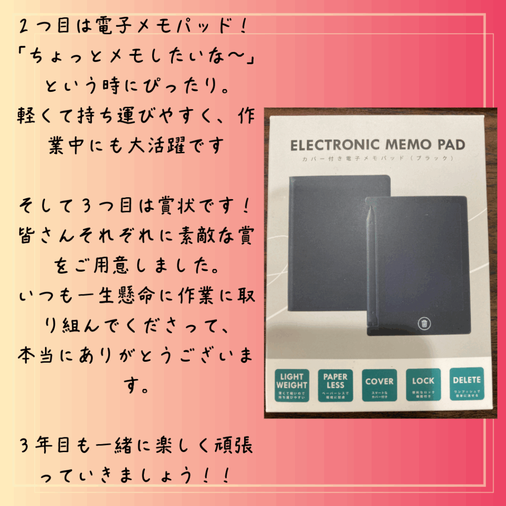 今回は、ステッカー、電子メモパッド、賞状を頂きました(/・ω・)/🎵