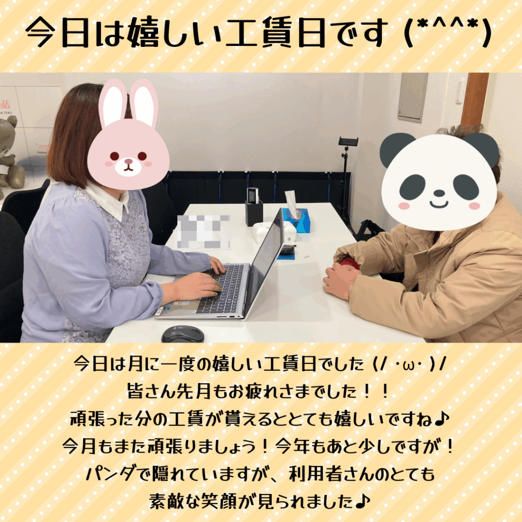 今日は月に一度の嬉しい工賃日です!!