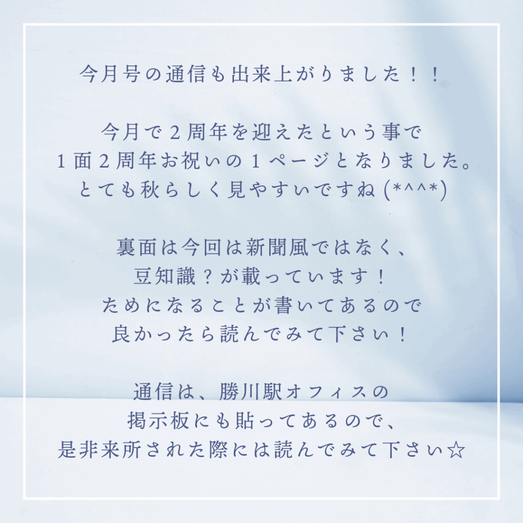 通信は、施設内の掲示板に掲載しているので良かったら来所された際には見て下さいね⭐