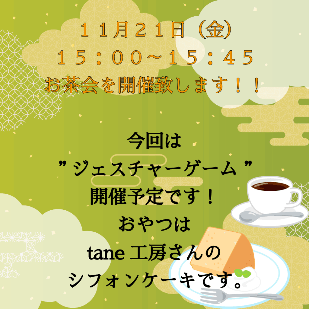 今月もお茶会やります!!