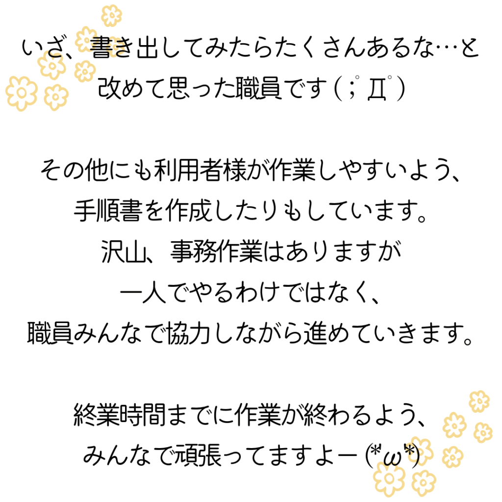 職員みんなで手分けしてやっているみたいなので一人だけに偏らずいいことですね!!