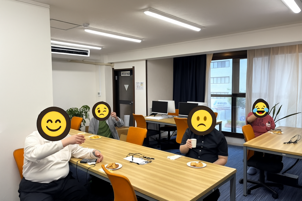 今回はゲームなどの活動はお休みして、利用者の皆さんとお茶やジュースを楽しみながら、たくさんお話をする時間を過ごしました。