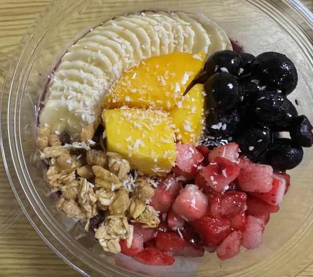冷凍されたアサイーのスムージーは、ひんやりと冷たく、口の中でなめらかに溶けていきます。そこに、さまざまなフルーツの甘みと酸味、グラノーラの心地よい食感が加わり、一口食べるごとに豊かなハーモニーを奏でます。アイスクリームのような満足感がありながら、食べた後の罪悪感はゼロ。むしろ、体が喜んでいるのを感じられるでしょう。