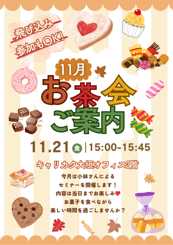 キャリカクでは、月に1回「お茶会🍵」を開催しています!