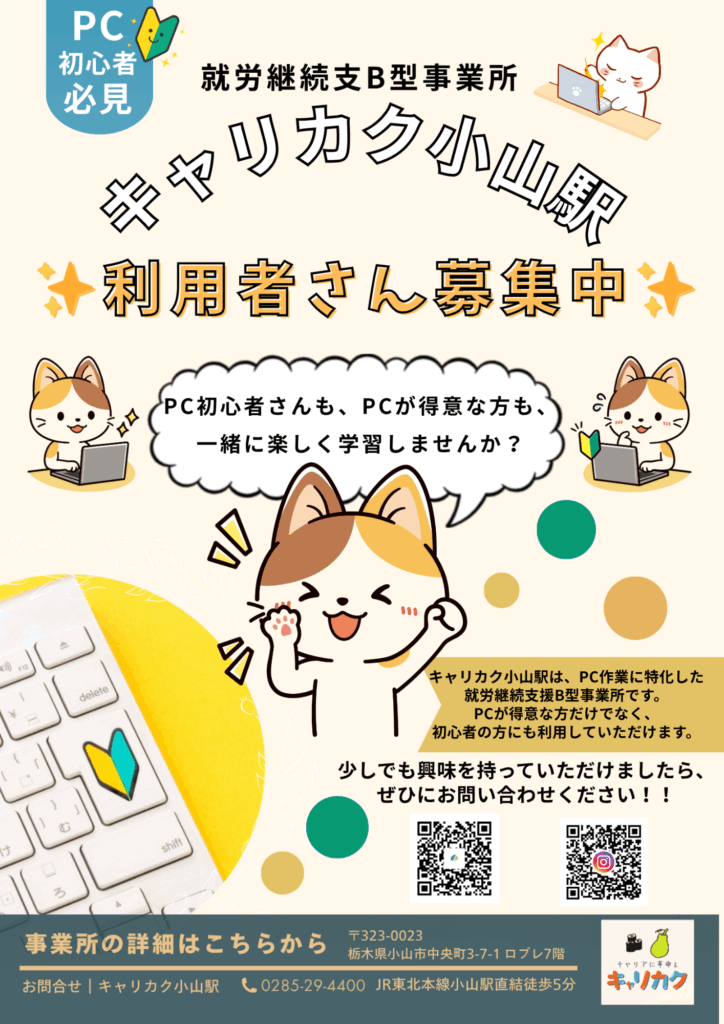 ただいまキャリカク小山駅では【利用者様を大募集】しています!