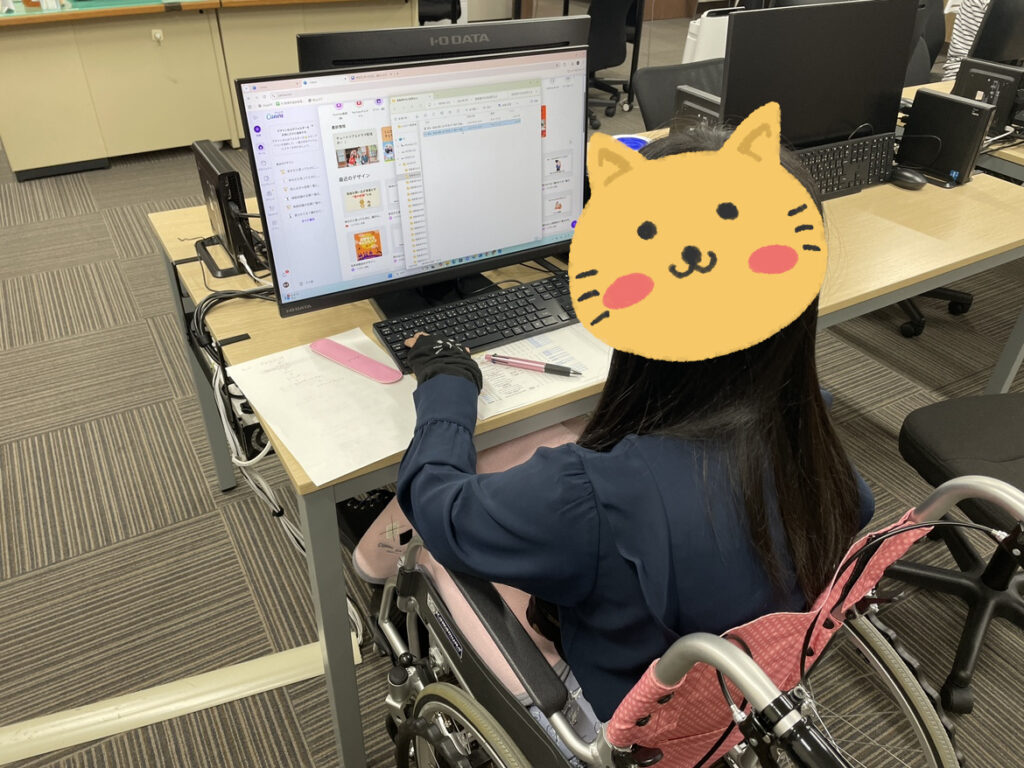 こちらの利用者さまは、最初は経理関係の職のみ探していらっしゃいましたが今はパソコンを使って動画制作やチラシ広告を作れるようになり職探しの幅が広くなったと喜ばれていました。