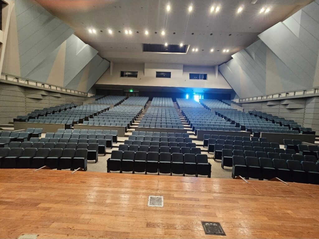 下記写真は1回目 尾鷲市民会館の舞台。ここから歌います