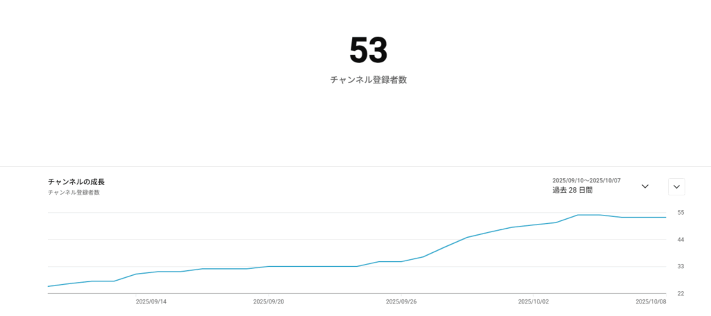 YouTubeですが、おかげ様で約一か月半のYouTubeでの活動で登録者は50人となりました。             今後も週1回以上の動画投稿ペースを維持して年内に登録者を100人を目指しています。