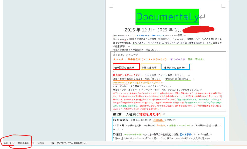 2~4月 NHKのど自慢への準備をしつつ、家のパソコンでWordを使い、前職(ファーストキャリア)就職前の2016年から、退職後までの2025年5月あたりまでの過去分析を70ページ・9万文字以上の過去分析をWordで書き上げるという作業を行いました。(キャリカクに来る前の段階で)